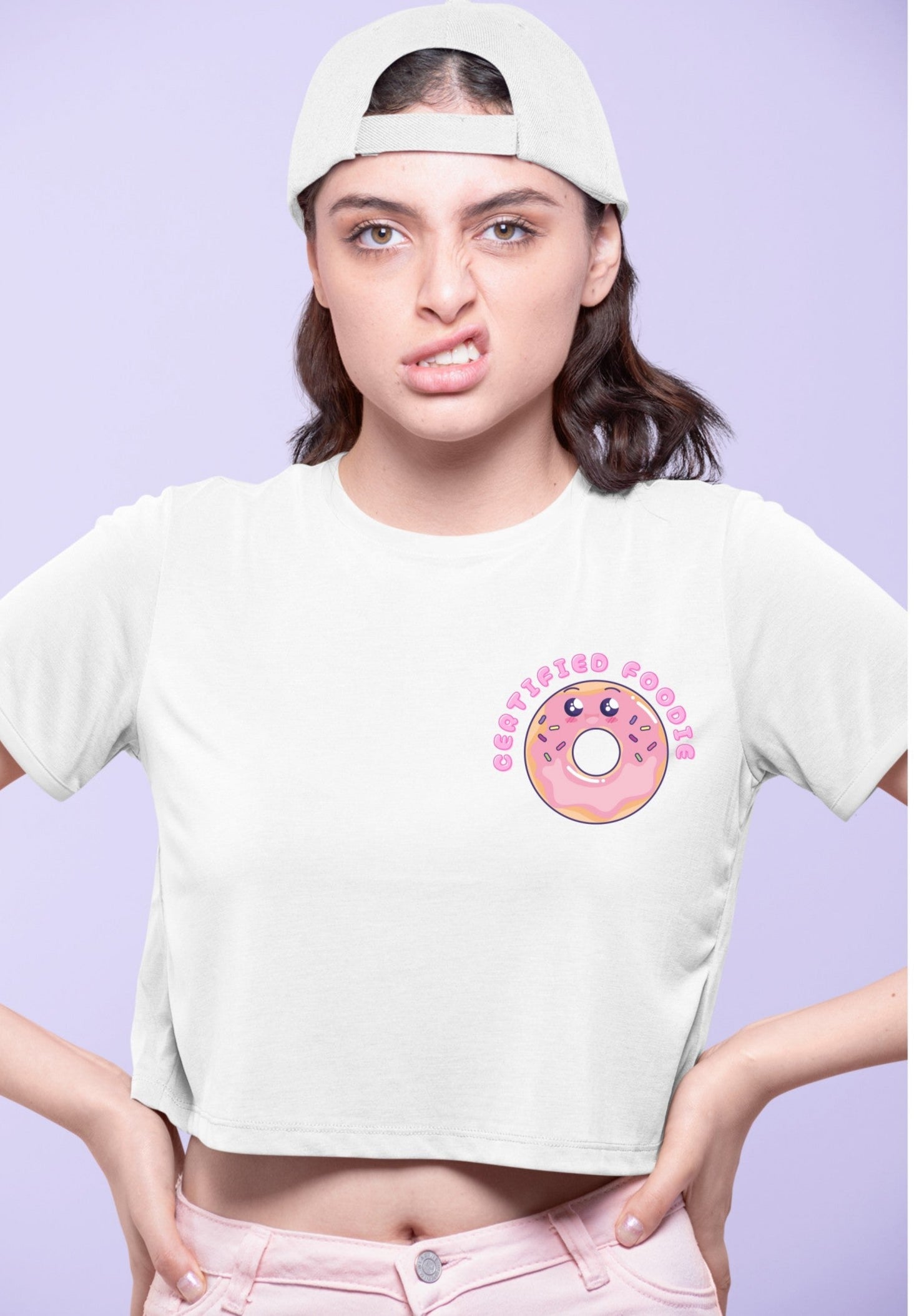 Certified Foodie Printed White Crop T-Shirt