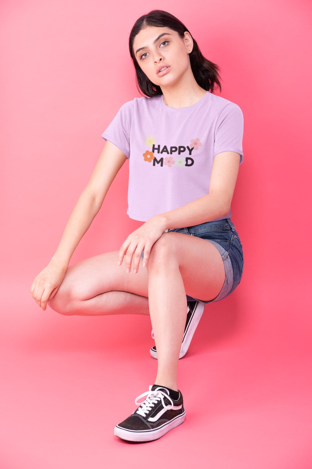 ringer t shirt mockup of a trendy woman posing with bent knees 27177 1Happy Mode Print Lilac Crop Top