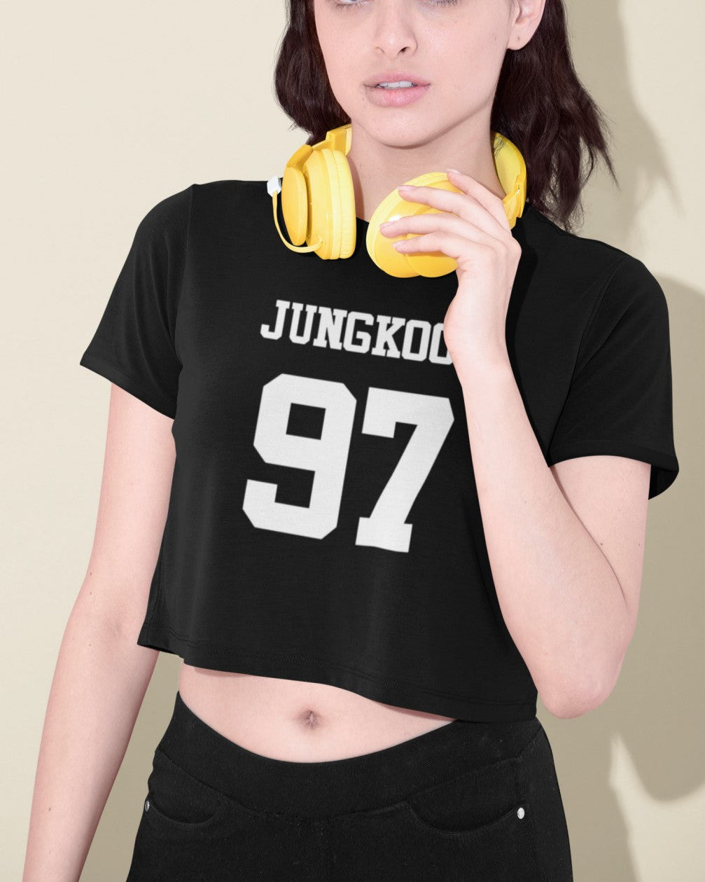 Jungkook 97 Print Black Crop T-Shirt