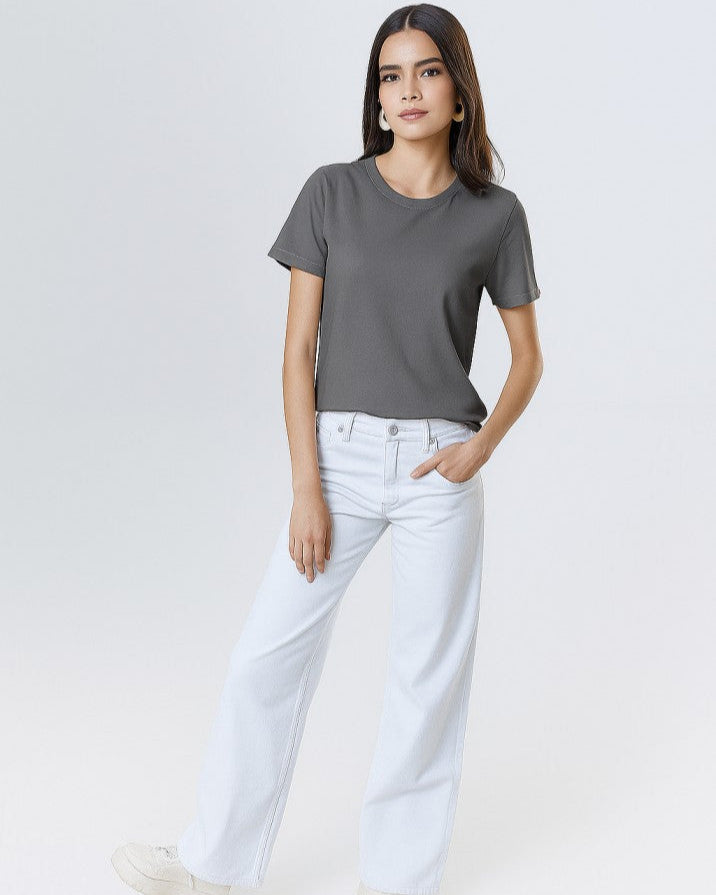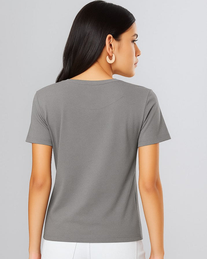 Women Charcoal Plain T-Shirt